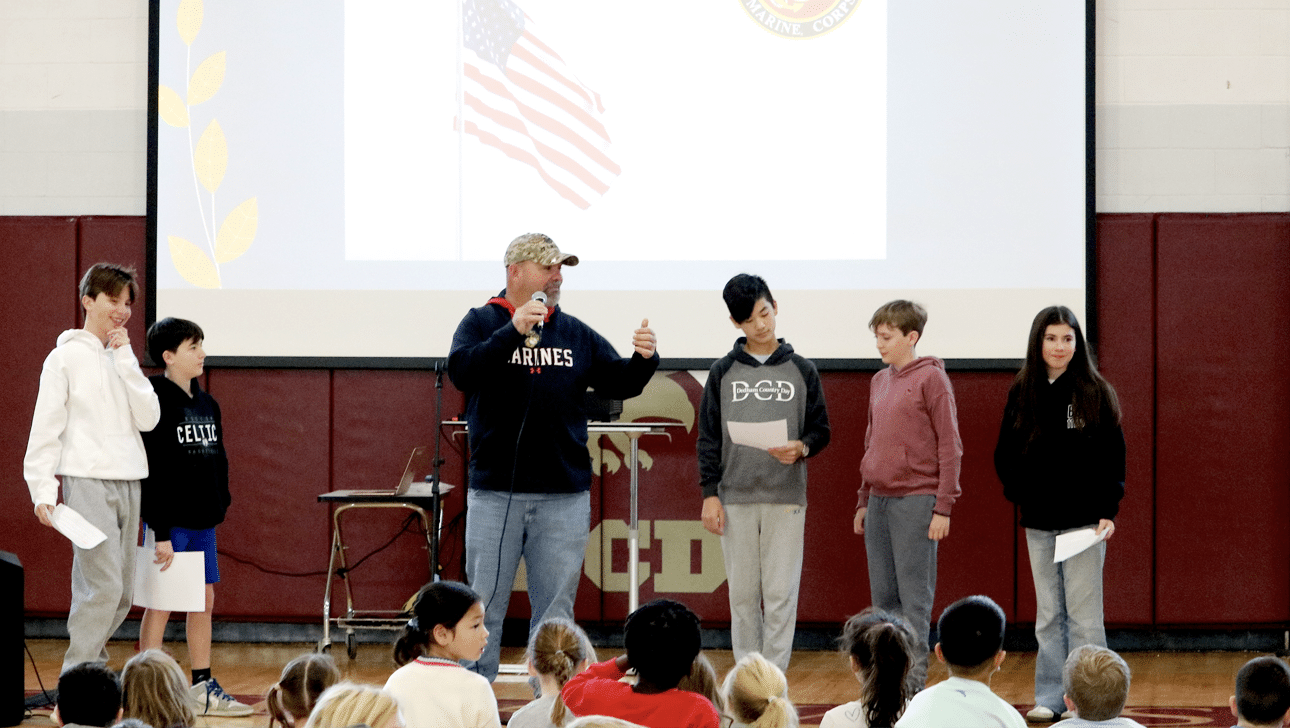 This past Friday, DCD had the honor of welcoming Marine veteran Mr. Joe Hamilton, who visited to speak in recognition of Veterans Day. Mr. Hamilton talked about his time in the Marine Corps, offering students a glimpse into military service. Our Service Learning Ambassadors had the opportunity to ask Mr. Hamilton thoughtful questions about where he was stationed, what his day-to-day life was like, and some of the favorite places he traveled during his service, and then Mr. Hamilton also took questions from the student audience.