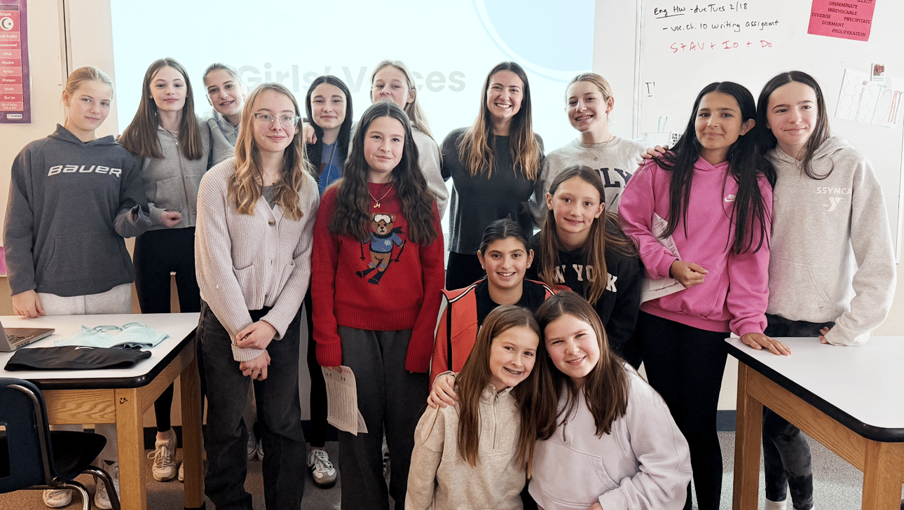 This past winter, Sara came to speak to the DCD middle school affinity group, Girls’ Voices, where she shared an informative presentation and led a lively group discussion, touching on topics like the “Pink Tax”, spreading body positivity, and how during her masters program she was working toward designing products and places that are inclusive and safe for women.
