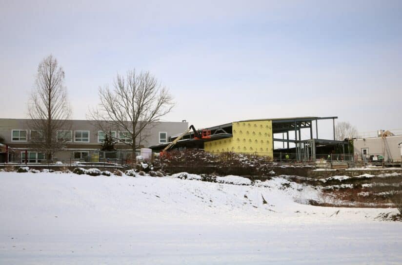 With a solid foundation thanks to the support of our generous donors, our new theater has begun to rise, and progress is apparent on a daily basis. From the initial groundbreaking, students have been an integral part of the progress, touring the construction site, signing a steel beam to cement their involvement in the project, and watching the school grow before their eyes. By the winter of 2026, the structural frame has been completed, and the walls and the roof are completing the silhouette of the new space.